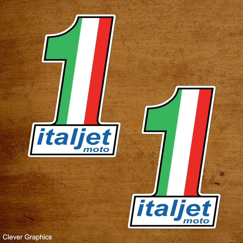 Pair of Italjet Number One Stickers, Classic Race Bike / Motorsport Decals.